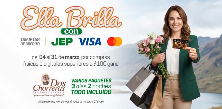 Los tarjetahabientes crédito JEP VISA/MASTERCARD que realicen compras físicas o digitales acumuladas superiores a $100 durante el período de la campaña participan en el sorteo de:- Varios paquetes 3 Días 2 noches en Dos Chorreras, todo incluido.